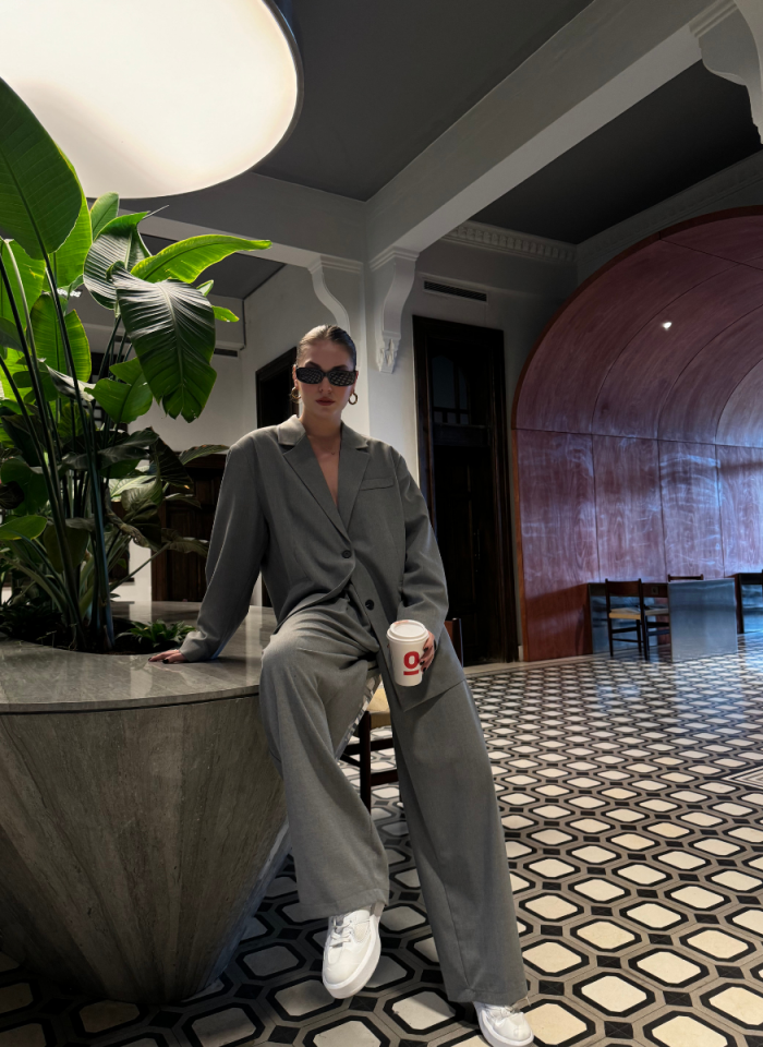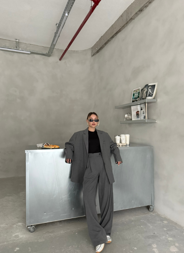 Düşük omuz kesimi ve vatkalı yapısıyla modern bir duruş sergiler. Ön kısmındaki süs cep çizgisi ise cekete sofistike bir detay katıyor.